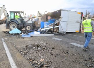 El tráfico fue cortado totalmente tras el vuelco de un camión
