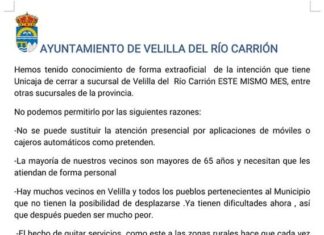 Dentro de las acciones que ha iniciado el Ayuntamiento para evitar el cierre de la oficina de Unicaja en Velilla del Río Carrión, comienza...