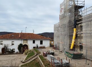 Han comenzado las obras para la recuperación de la fachada de este representativo edificio de la localidad guardense que permanece tras andamios y mallas