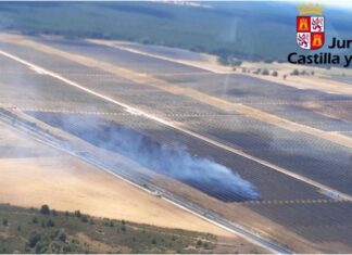 Arde una hectárea de un parque solar en Palencia a escasos metros de una masa forestal de miles de hectáreas