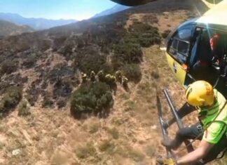 (Video) Rescatado en helicóptero un miembro de una cuadrilla terrestre herido en la cascada de Mazobre