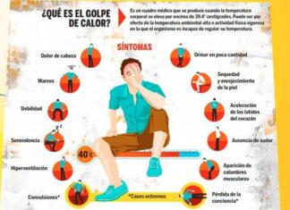 Golpe de calor: náuseas, vómitos, dolor de cabeza, piel caliente y enrojecida, temperaturas por encima de los...