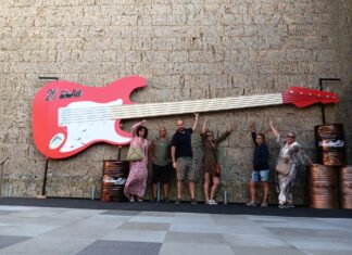 Una guitarra de 7,5 metros ha presidido el escenario en el veinte aniversario del Festival Solidario Tachurock de Itero de la Vega