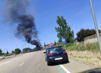 La llamas engullen un turismo junto a San Zoilo en Carrión y activan el dispositivo forestal