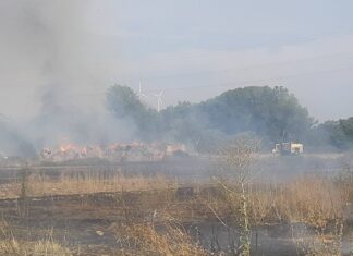 Un incendio provocado por una segadora pone en jaque una finca equina en Palencia
