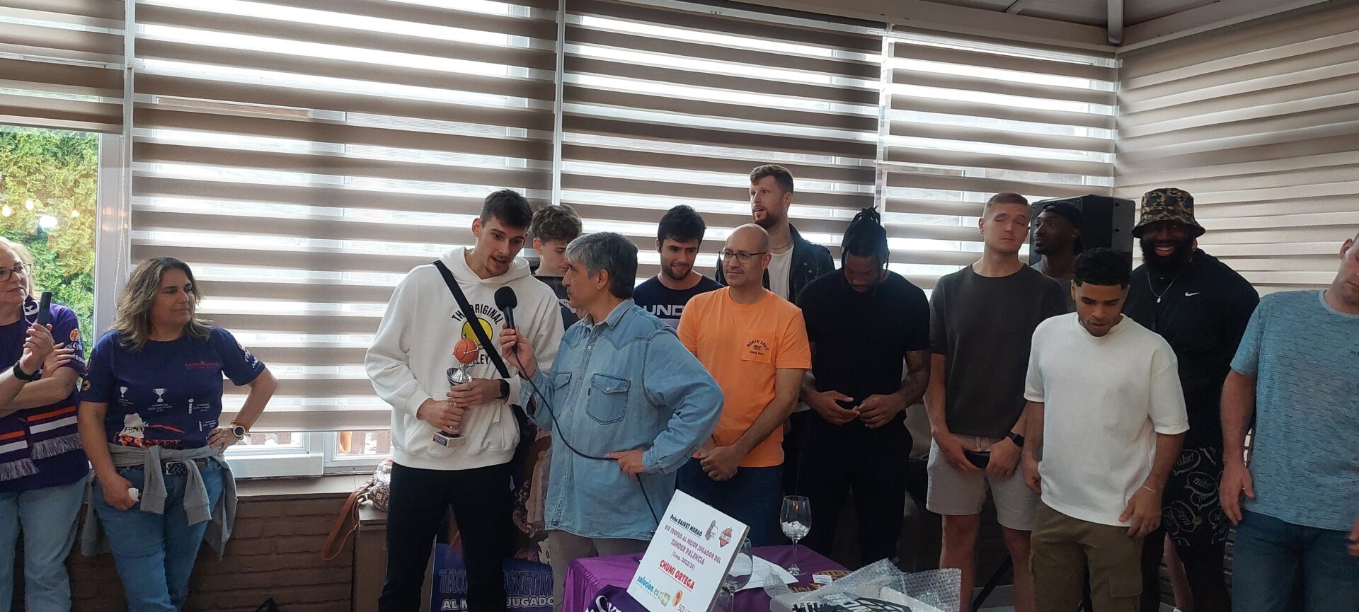 Fue pasadas las 19:30 horas cuando entraron en uno de los salones del hotel todos los jugadores acompañados por los miembros del cuerpo técnico con una merecida ovación por parte de los 80 socios de la Peña Basket Morao allí presentes.