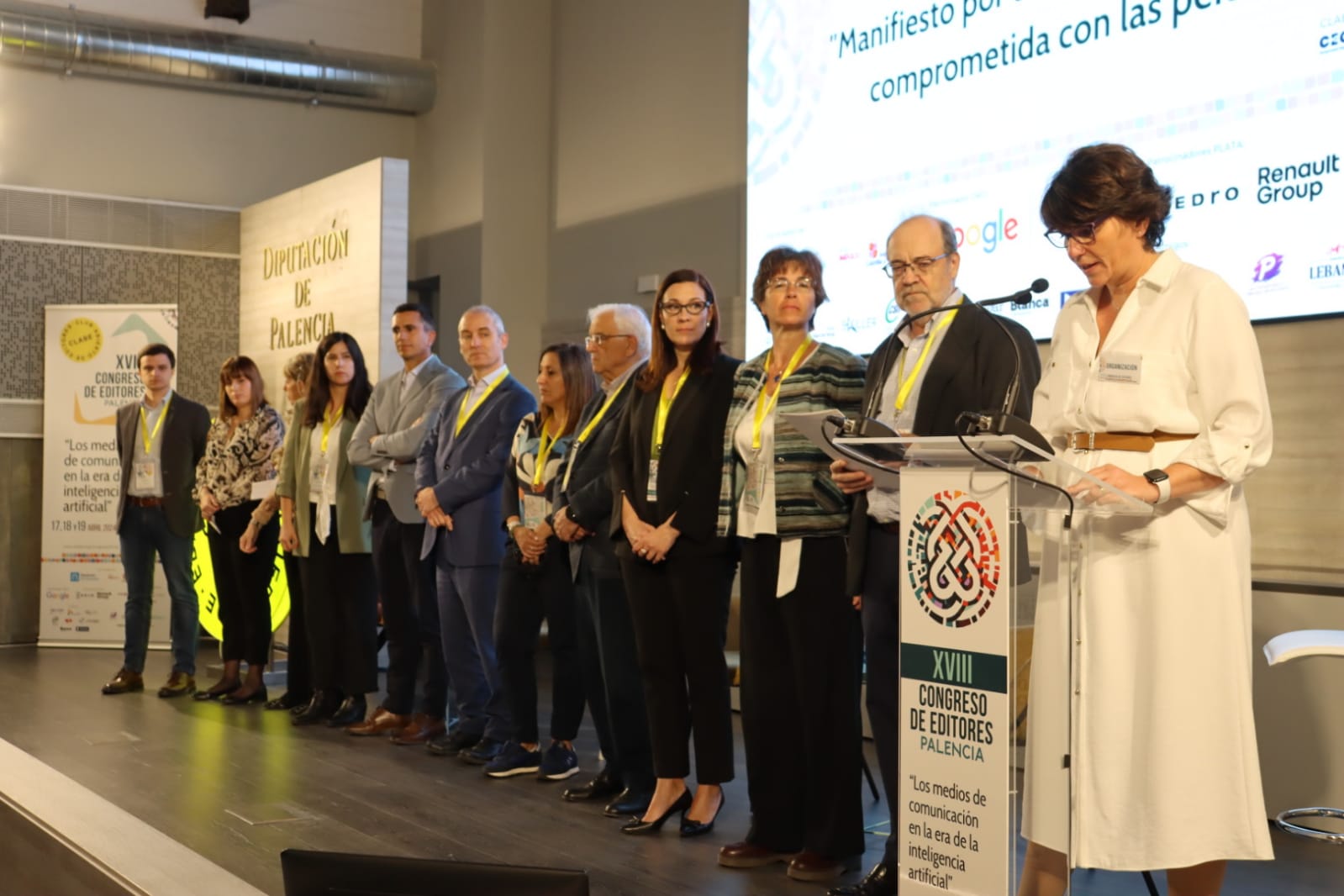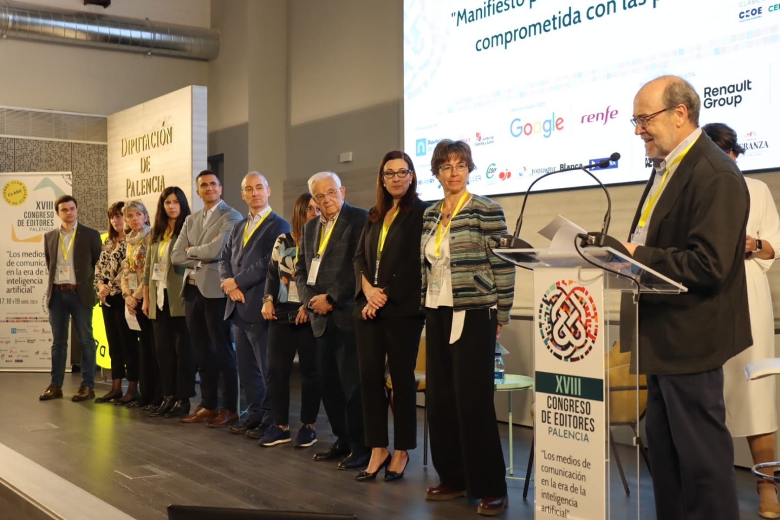 Tras la pausa para el café, el Congreso de CLABE en Palencia retomó su primera edición con la presentación del Manifiesto del Día de Internet 2024: “Manifiesto por una inteligencia artificial comprometida con las personas”. Seguidamente, dio comienzo la tercera sesión del Congreso: ¿Para qué usamos la IA en los medios?