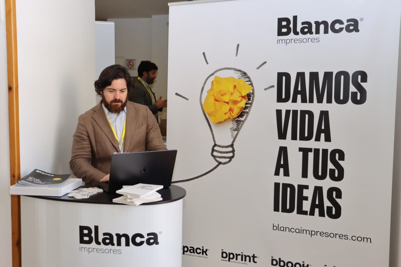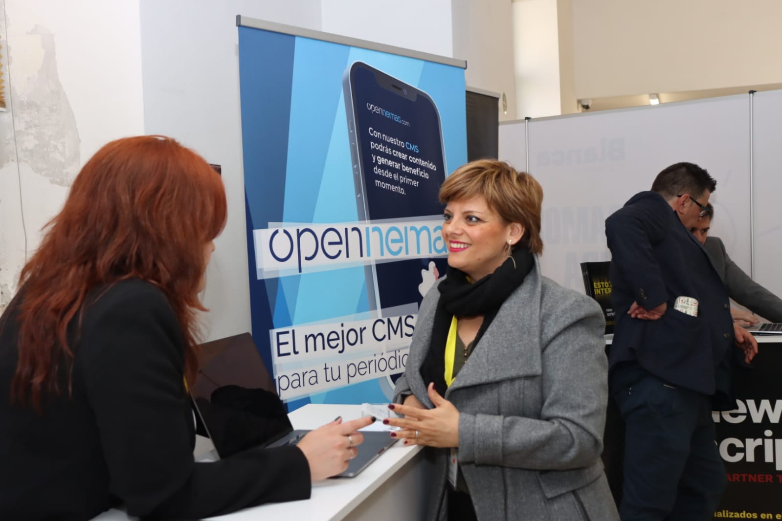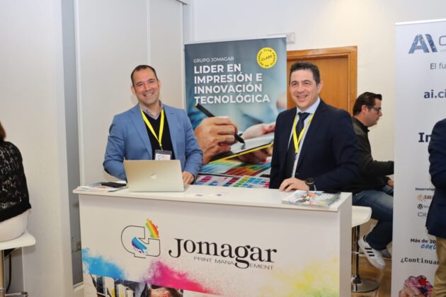 El renovado Centro Cultural Provincial acogió también un amplio abanico de stands comerciales relacionados con el sector de la comunicación y las IAs en el hall del centro.