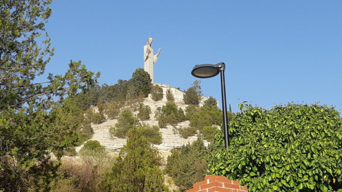 Para muchos, subir a lo alto del Cristo del Otero es un sueño. Unos pocos pudieron hacerlo hace unos años cuando se llevó a cabo la rehabilitación y limpieza del exterior de este gran monumento tan palentino y ver lo que se observa desde el pararrayos que protege al protector de la ciudad. Algo que se pudo hacer gracias al montaje de un gran andamio que partía de la base del Cristo, hacía escala en su pies y luego subía vertical pegado a la estatua.