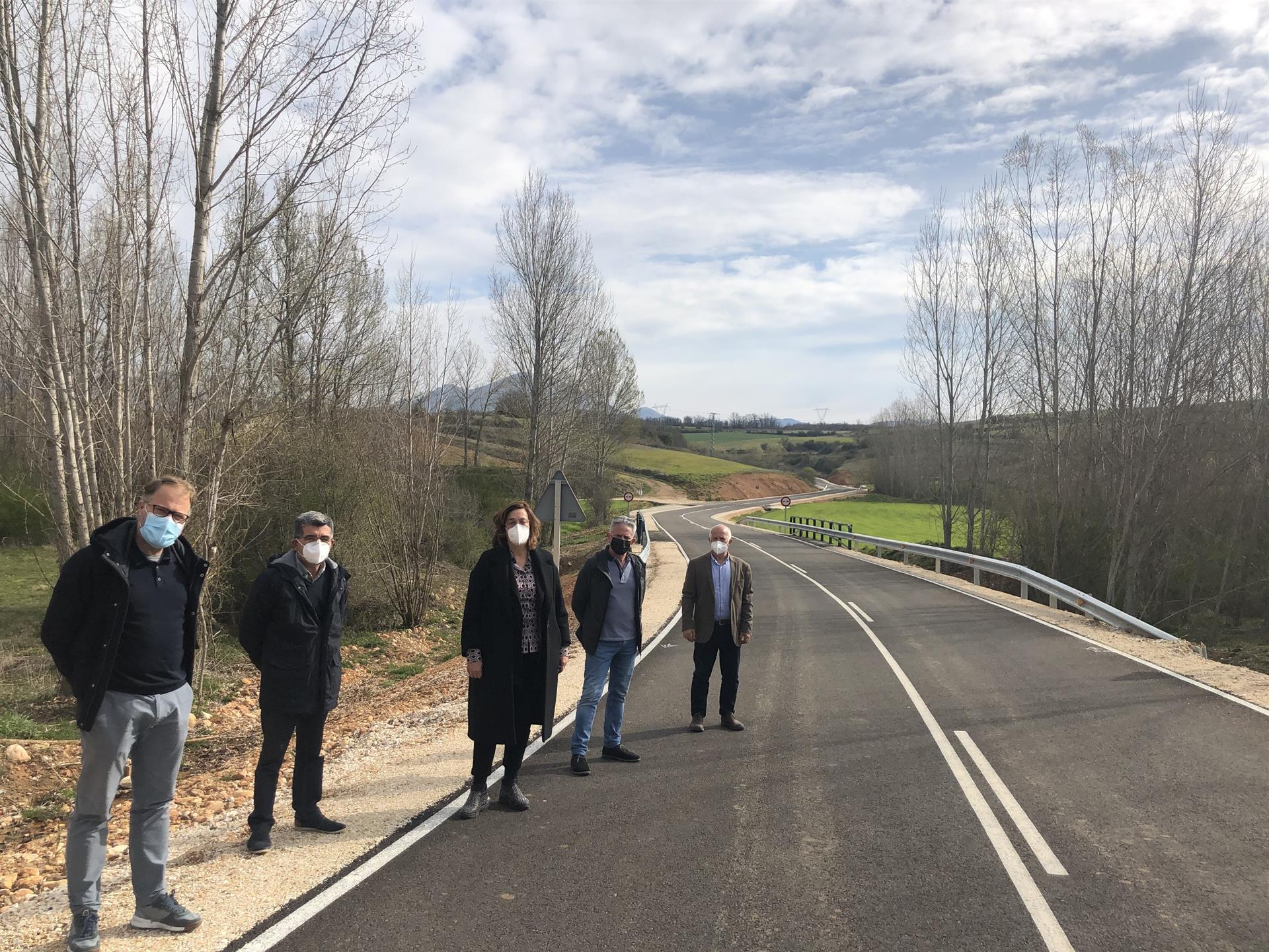 La presidenta de la Diputación, Ángeles Armisén, acompañada del diputado de Acción Territorial, Urbano Alonso, y del diputado de zona, Jesús Sevilla, ha visitado este lunes el resultado de la segunda fase de las obras de ensanche y refuerzo del firme de la carretera de la Peña, que ha supuesto una inversión de 783.000 euros.