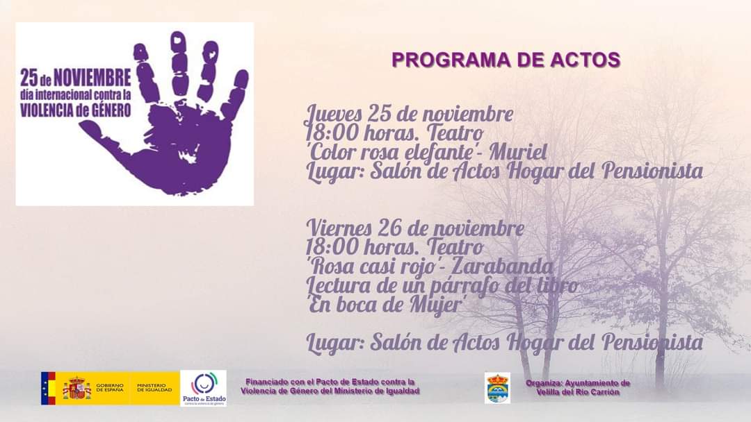 El 25 de noviembre es el Día Internacional contra la Violencia de Género y, por ello, desde el Ayuntamiento de Vellilla del Río Carrión con la financiación del Pacto de Estado contra la Violencia de Género del Ministerio de Igualdad, han organizado varios actos con el objetivo de seguir luchando y concienciar para lograr una igualdad real entre hombres y mujeres.
