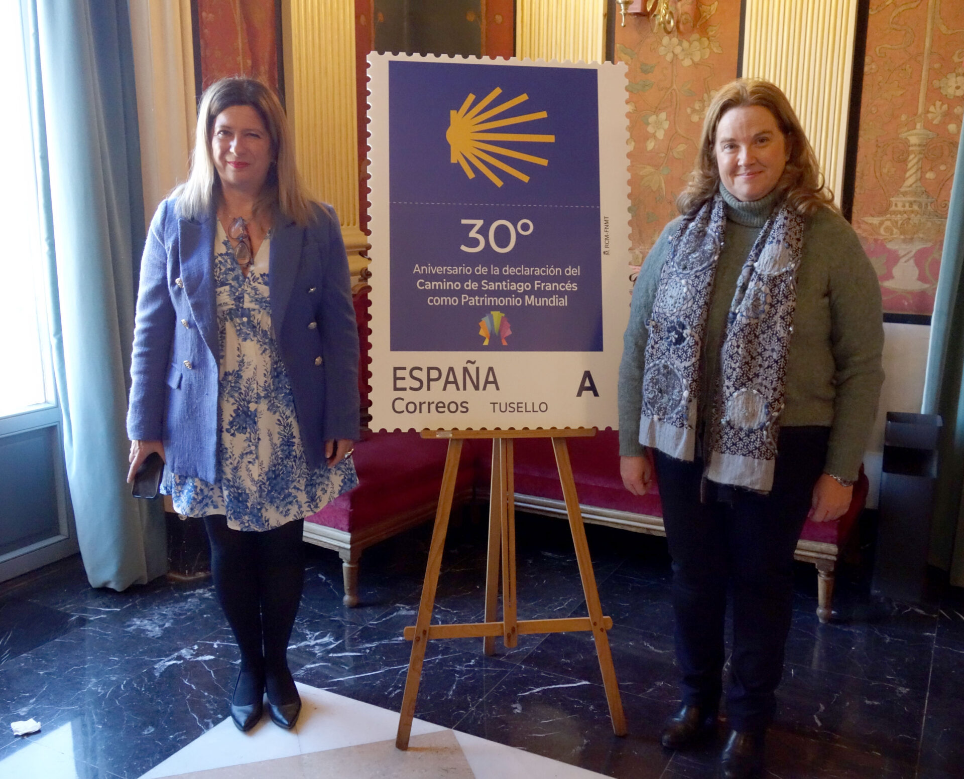 La alcaldesa de Burgos y vicepresidenta de la Asociación de Municipios del Camino de Santiago, Cristina Ayala y la directora de Filatelia de Correos, Leire Díez, han presentado hoy en Burgos la emisión dedicada a la Ruta Jacobea.