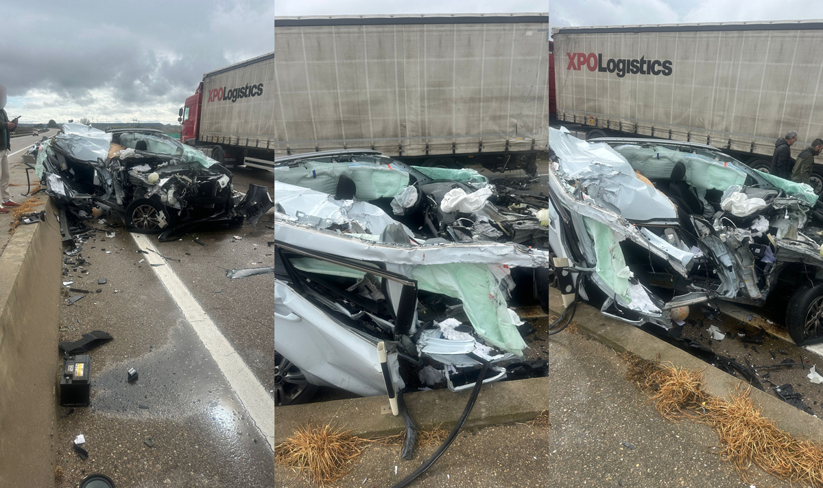 La colisión entre un turismo y un camión obliga a la Guardia Civil de Tráfico a desviar el tráfico por la vía de servicio. El conductor del coche ha resultado herido leve