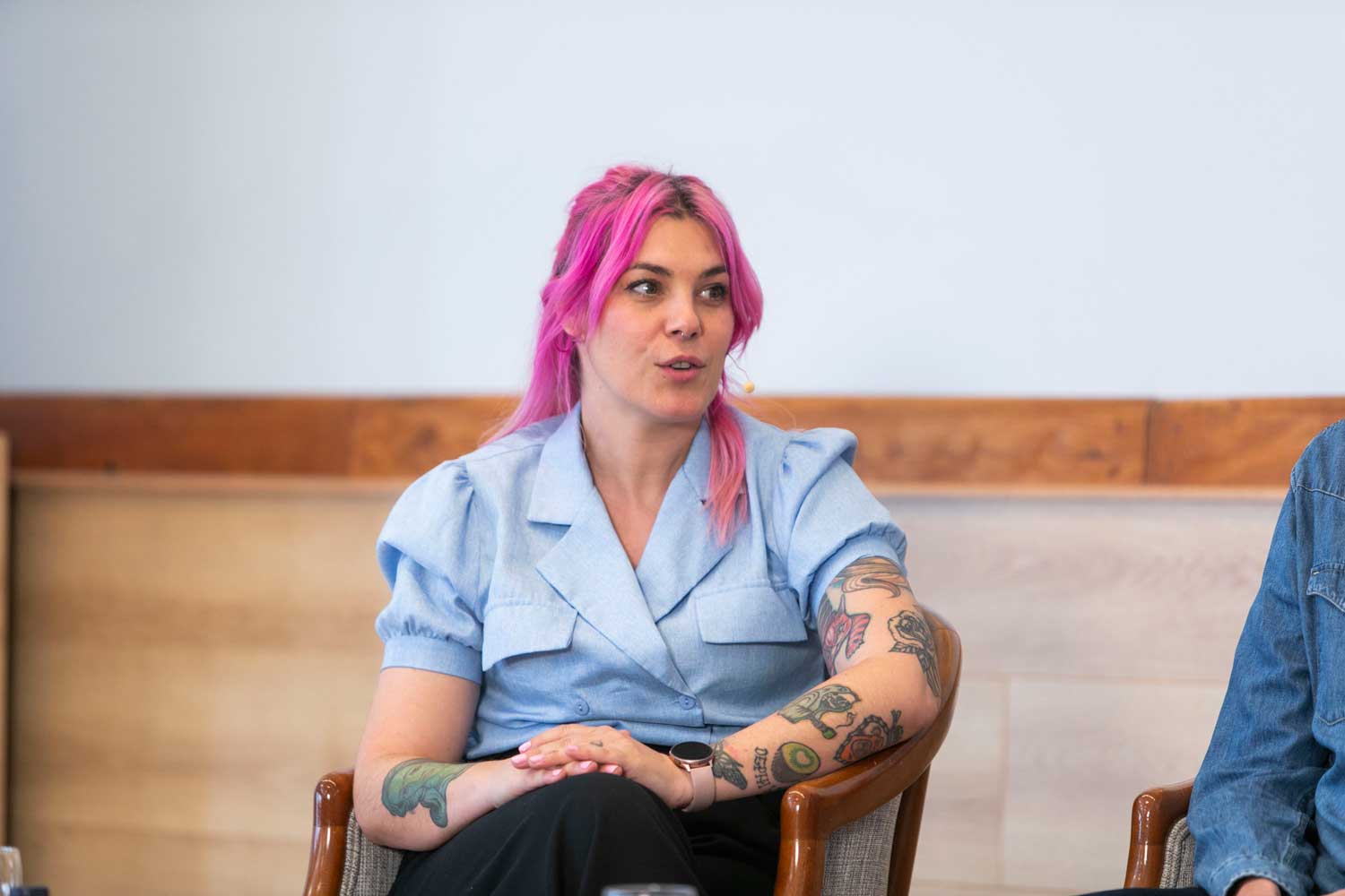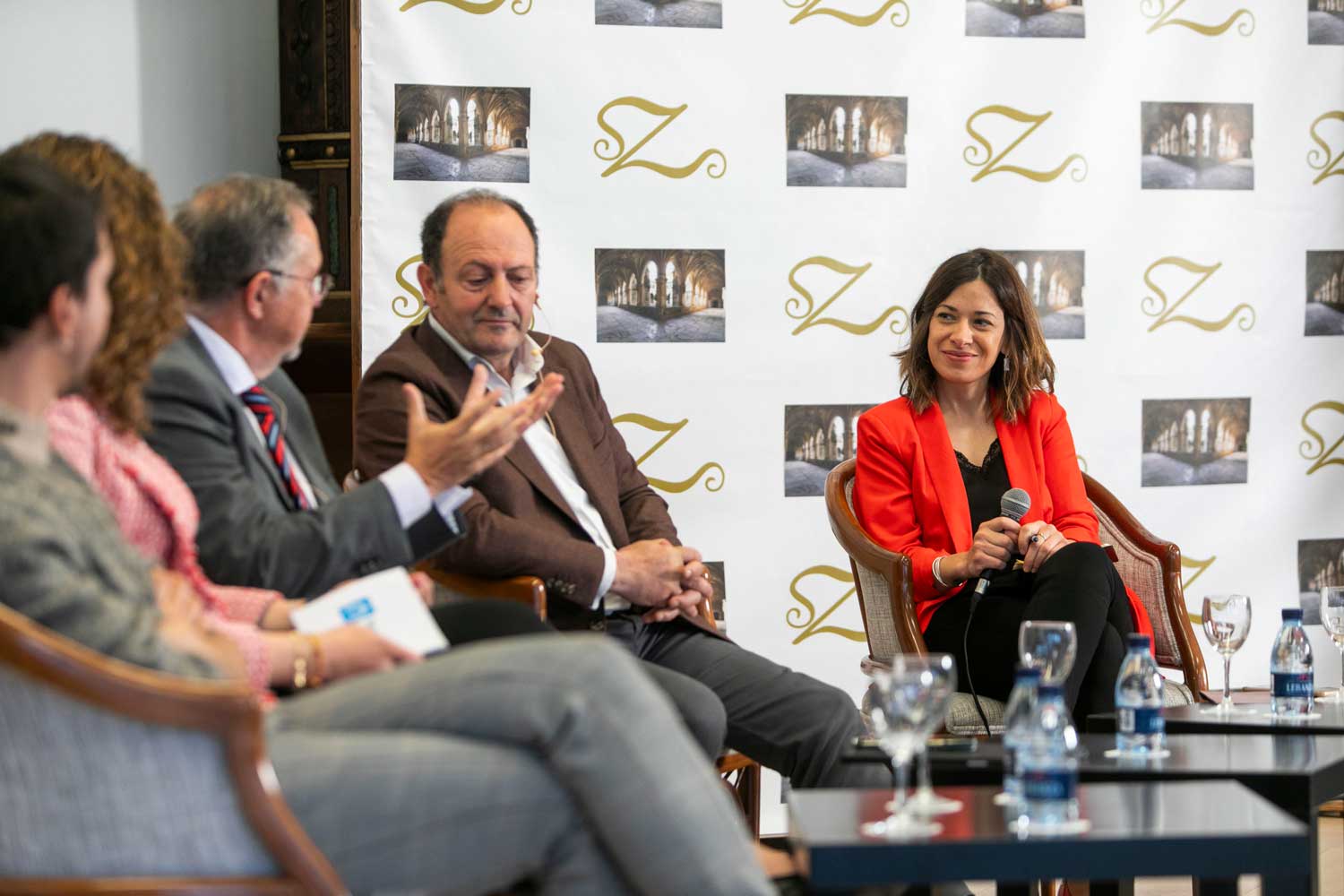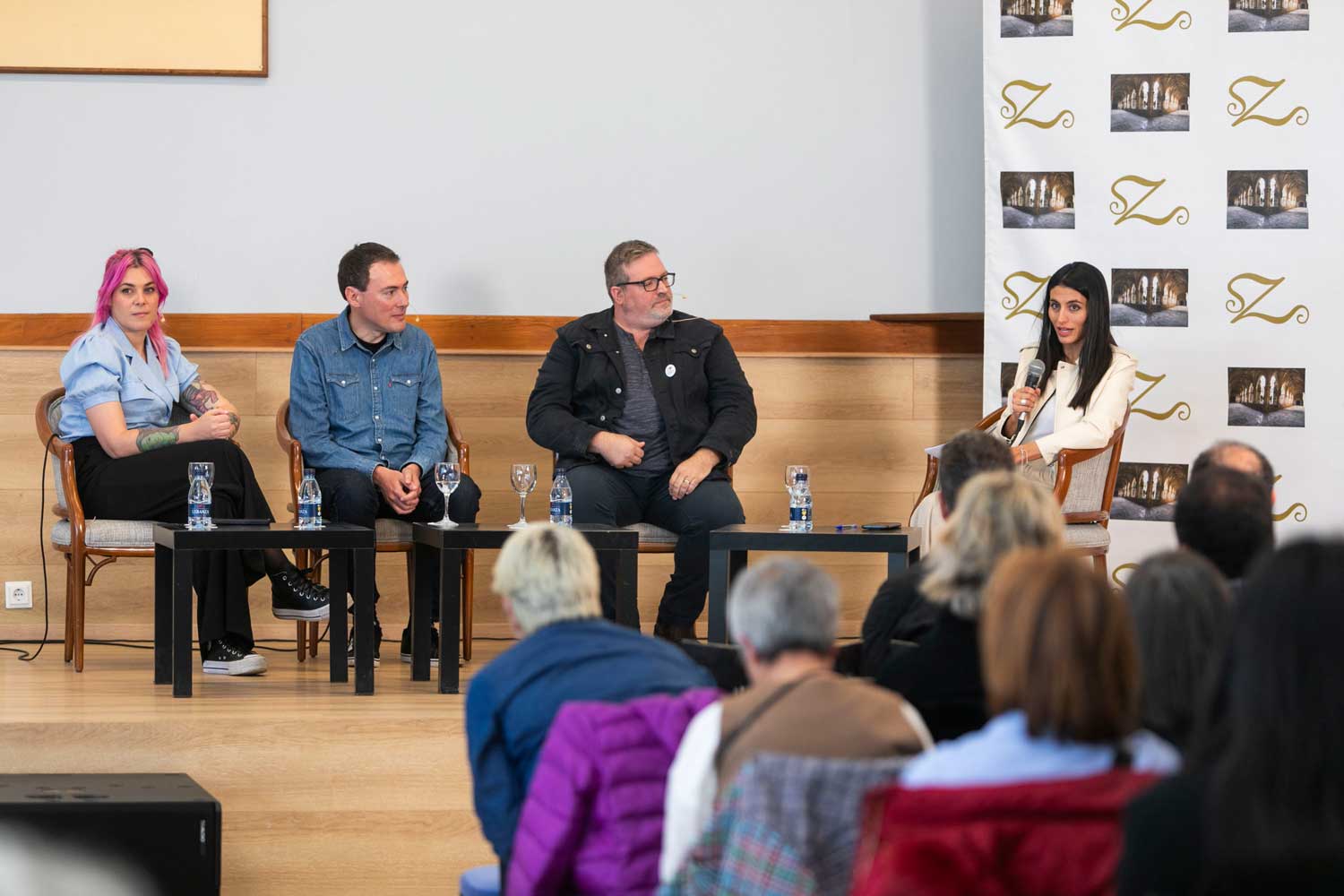 Una parte de esa delegación de influencers (no confundamos, hablamos de divulgadores expertos en historia medieval, arte y patrimonio, con todo el rigor) protagonizaron el segundo coloquio de la mañana, que se preguntaba “¿Cómo conectar con las audiencias del siglo XXI para divulgar sobre el patrimonio?”: Javier Trailé, Sara Rubayo y Diego Rubio (conocido por su proyecto Arte Viajero), con la periodista de RTVCyL María Ramos como moderadora.