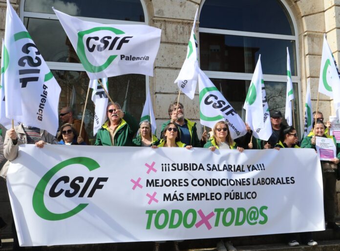 La Central Sindical Independiente y de Funcionarios (CSIF), sindicato más representativo en las administraciones públicas, ha convocado hoy movilizaciones en toda España para exigir al Gobierno que se mejoren las condiciones laborales de los empleados públicos en diferentes ámbitos, entre ellos la subida salarial pendiente desde el año pasado y un nuevo acuerdo retributivo. Esas concentraciones, en Palencia, se ha trasladado a la Subdelegación del Gobierno.