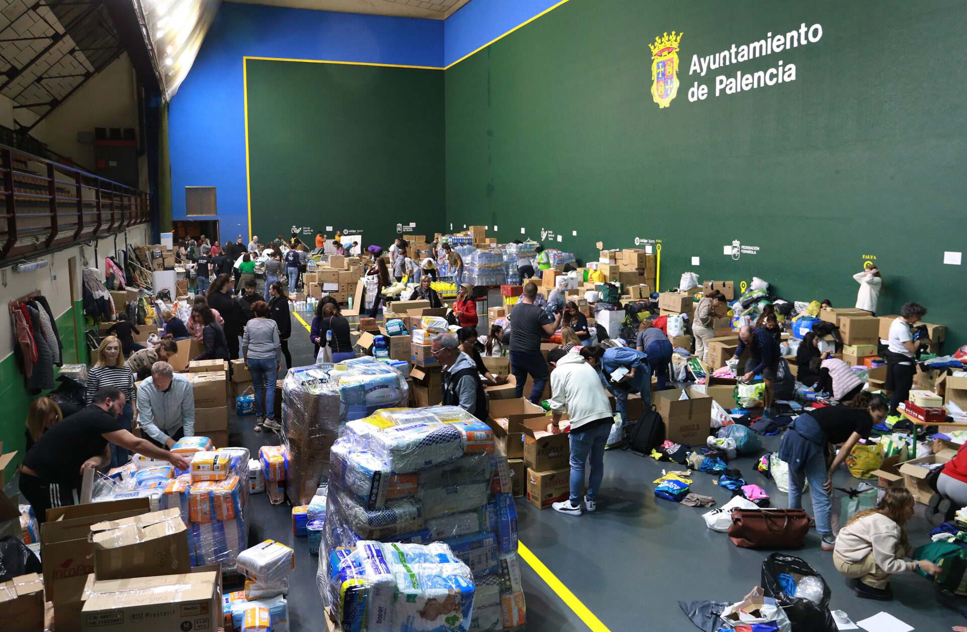 El frontón de La Ensenada recibe cada día cientos de kilos de material y comida, así como la ayuda desinteresada de los palentinos. De hecho, desde la organización indican a la entrada del mismo que, de momento, no se acuda con más ropa ante la avalancha de solidaridad de los palentinos que todavía pueden acudir con agua, leche, alimentos no perecederos o artículos de higiene, entre otros entre las 10 y las 12 horas y las 17 y 19 horas hasta el próximo miércoles. Una campaña del Ayuntamiento de la capital junto a la empresa de logística y transporte Transmab.