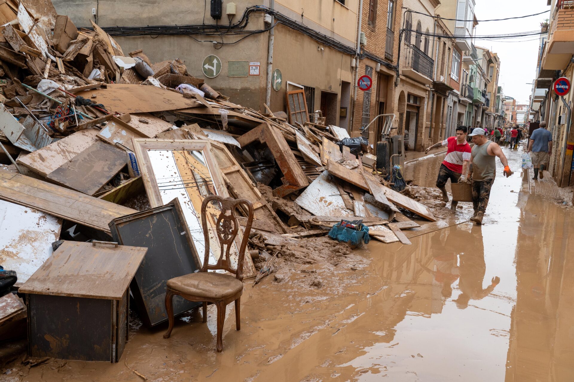 Fango por las rodillas, destrucción casi total y enseres de miles de viviendas en las calles constatan un escenario de terror en Catarroja, Albal, Massanasa, Alfafal y Paiporta, con vías en las que aún hoy solo han llegado vecinos y voluntarios