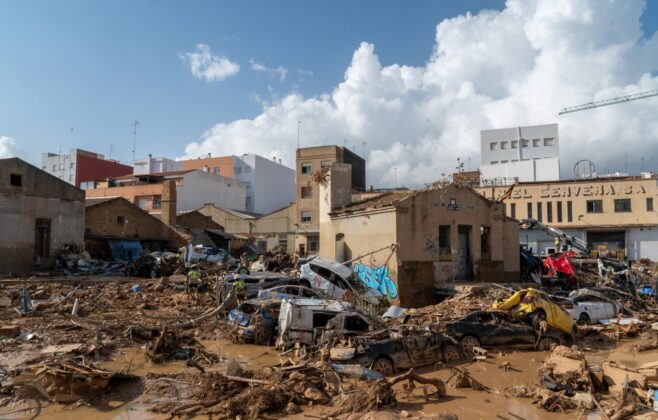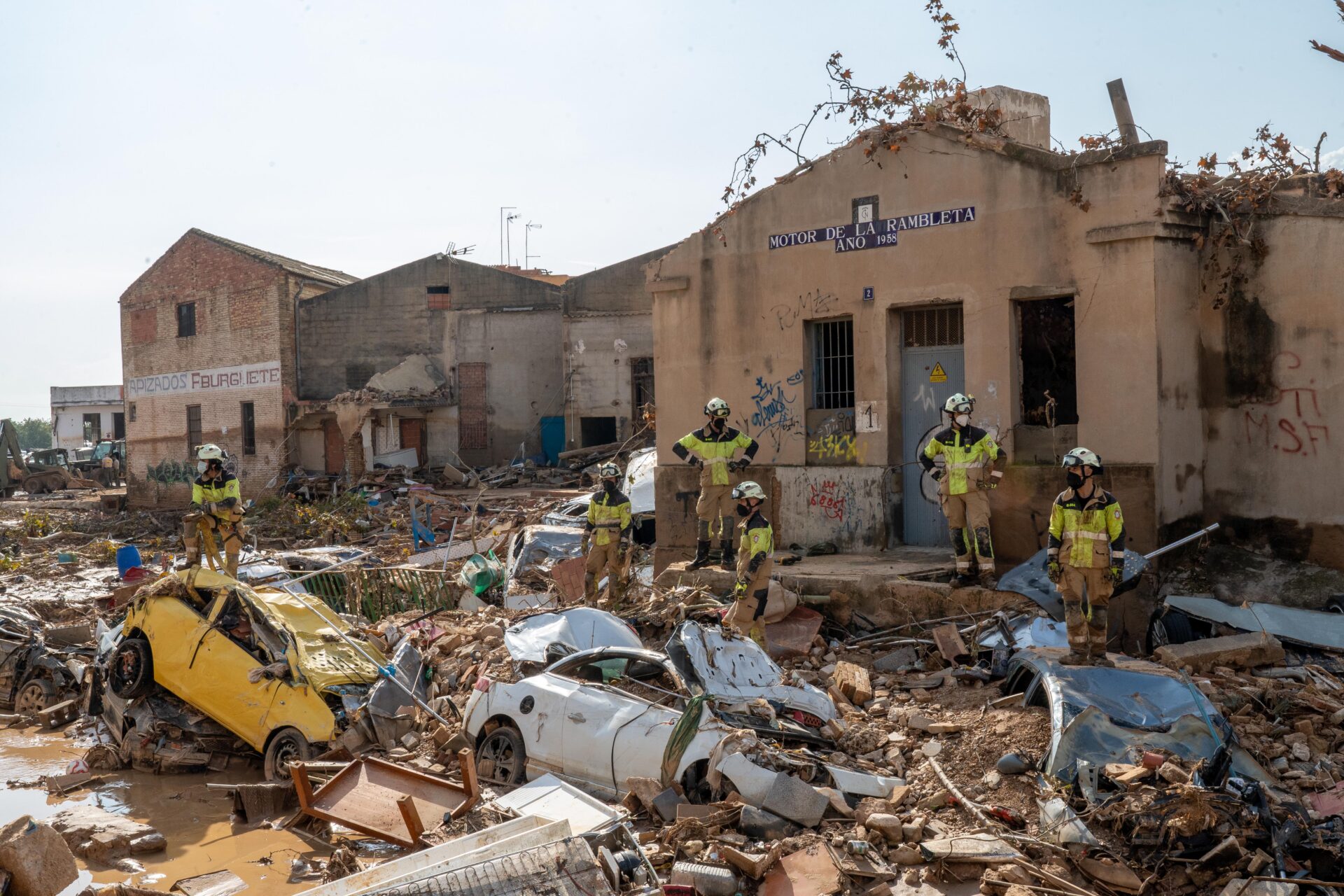 “Es una situación realmente excepcional. Solo es comparable a un tsunami o un terremoto. La gente está rota”. Enrique de la Cruz, uno de los mandos del Servicio de Bomberos del Ayuntamiento de Valladolid, descansa varios minutos y se retira la mascarilla a las puertas de un garaje en Albal, uno de los pueblos de la Huerta Sur de Valencia. Una semana después, la desolación en la zona cero es absoluta. “Ahora estamos achicando agua de este bajo”, señala, mientras apunta hacia un espacio en el que ayer mismo han rescatado a una persona fallecida que intentó sacar su vehículo cuando la riada en esta zona ya alcanzaba 1,80 metros.
