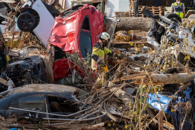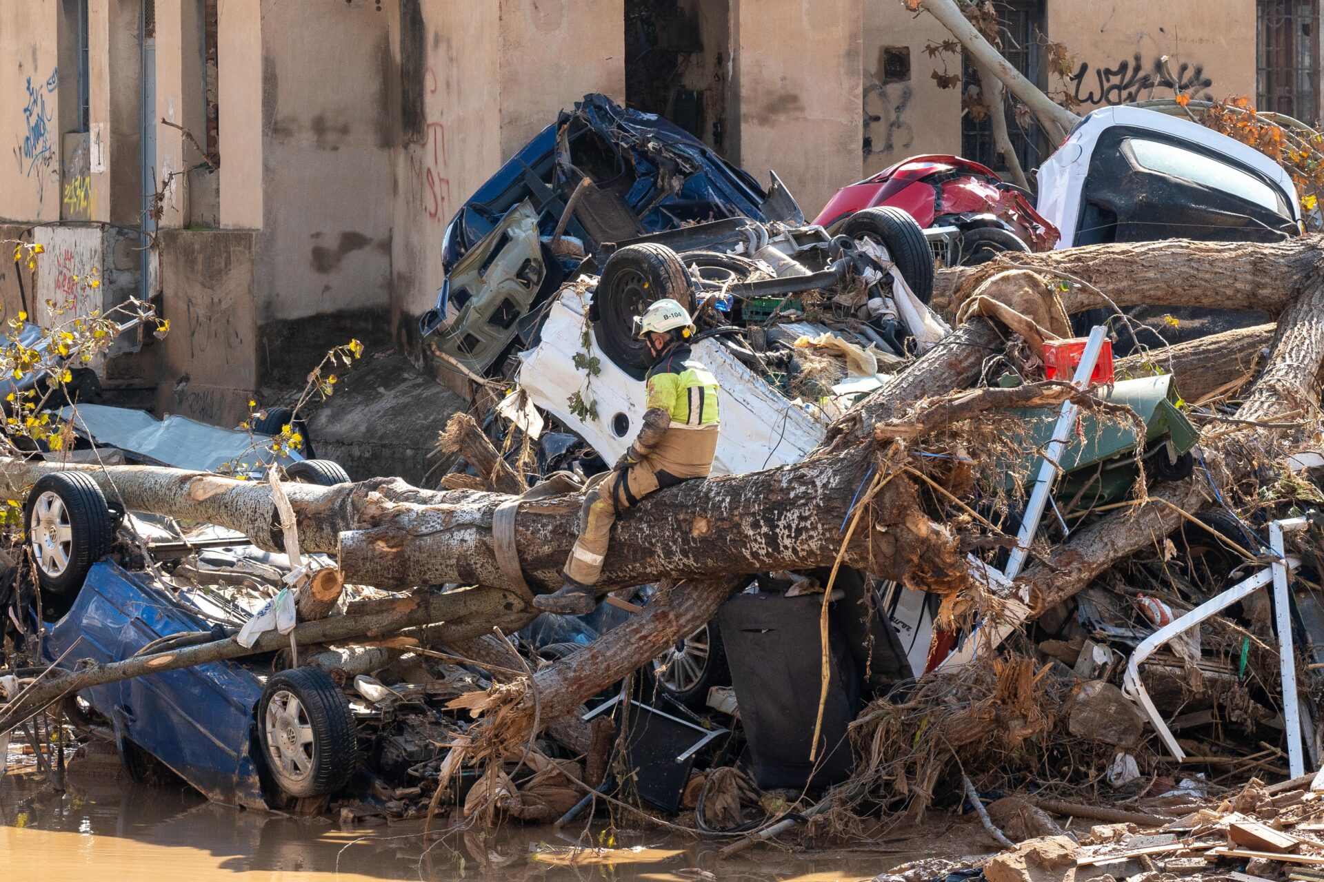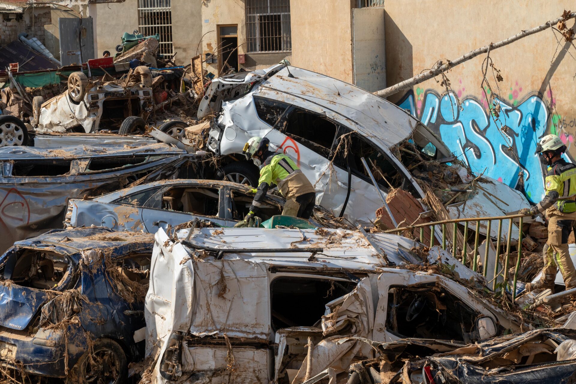 Un equipo de Ical se dirige hacia allí. Es necesario caminar casi ocho kilómetros, envueltos en botas de goma y con cinta alrededor de las rodillas para evitar empaparse los pies. No se distinguen las aceras de las calzadas y solo una silla de un bar, una sombrilla o una mesa advierten de la existencia de alcantarillas abiertas para dejar fluir el agua retirada. De repente, coches en una ‘rambleta’, en Catarroja, arrastrados por la riada, que en algunos puntos, aparte de altura, tomó una velocidad endiablada. Alberto, espera a distancia, con pantalón corto y botas, a que una grúa y los bomberos de La Coruña, extraigan su coche, que irá directo al desguace: “El coche estaba aparcado a un kilómetro de aquí. Imagina cómo ha llegado hasta aquí”. Junto a su hijo pequeño, se pudo salvar por unos pocos minutos.