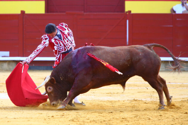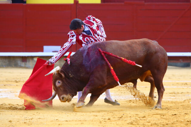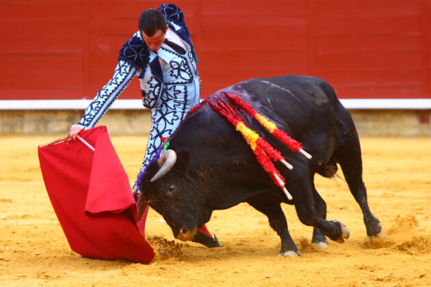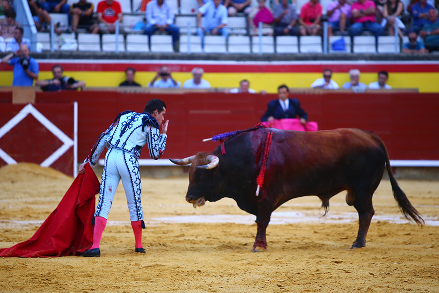 Al segundo de su lote, muy bravo pero sin recorrido, le echó el resto. La grada lo entendió y lo agradeció. Con embestidas altas, consiguió sacarle algunos buenos muletazos y lo cerró con una buena estocada que fue premiada con una oreja, más por la ganas que por lo acaecido. Bravo por Urdiales que mereció más ganas de sus dos contrincantes.