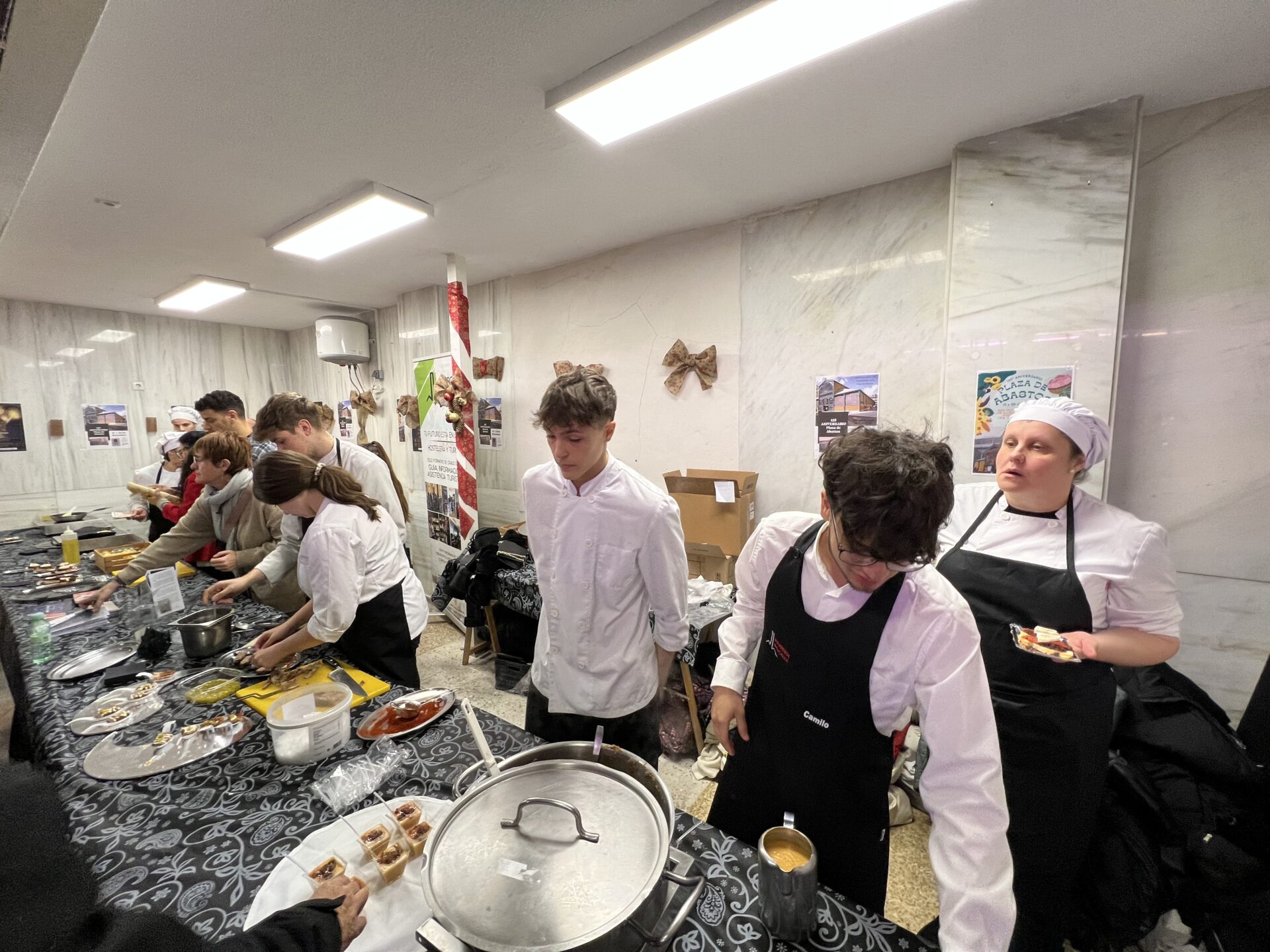 Una degustación, que se realiza con motivo del 125 aniversario de la Plaza, y que se repetirá el 20 de diciembre. Como decimos, en la que los propios puestos del Mercado de Abastos ofrecen una selección de sus productos para que los estudiantes de cocina en el Instituto de Bachillerato y Formación Profesional del Virgen de la Calle puedan llevar a cabo sus recetas, que clientes y visitantes de la Plaza podrán degustar en su interior.