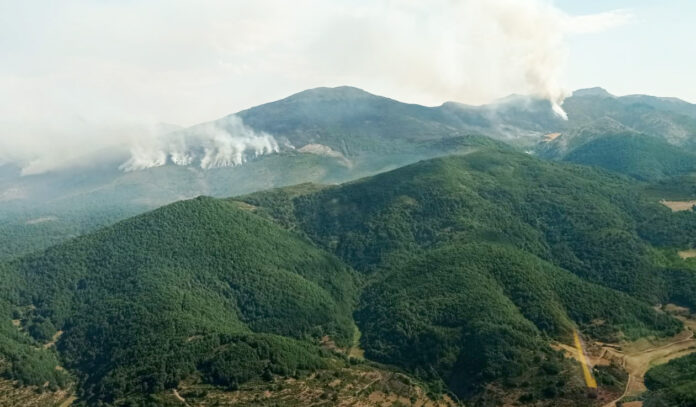 Respecto a los medios terrestres, en la extinción del incendio forestal trabajan en estos momentos dos técnicos, diez agentes medioambientales, seis cuadrillas de tierra, tres autobombas y tres bulldozer. Además, se ha solicitado apoyo a la Unidad Militar de Emergencias.