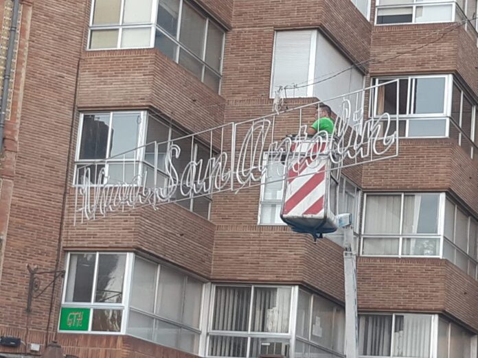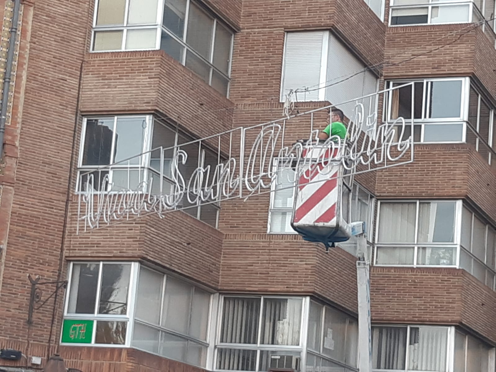 De esta forma, al genérico Felices Fiestas que otros años se podía ver al principio y al final de la Calle Mayor, le ha ganado la partida esta mañana, cuando se ha colocado el arco, un Viva San Antolín.