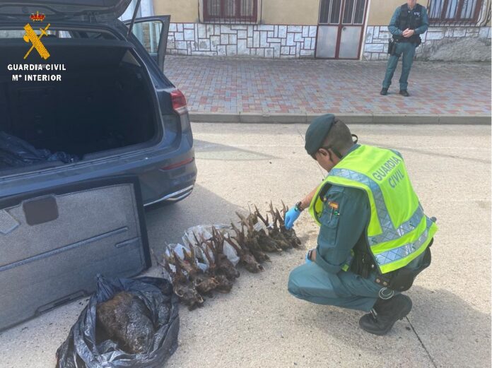 La Guardia Civil de Palencia denunció a un hombre de 30 años como supuesto autor de las infracciones de la Ley de Caza 4/201 de Castilla y León por tenencia, posesión y transporte de nueve cabezas de corzo macho y un jabalí sin autorización. Además, carecía de permiso de armas, según fuentes del instituto armado.
