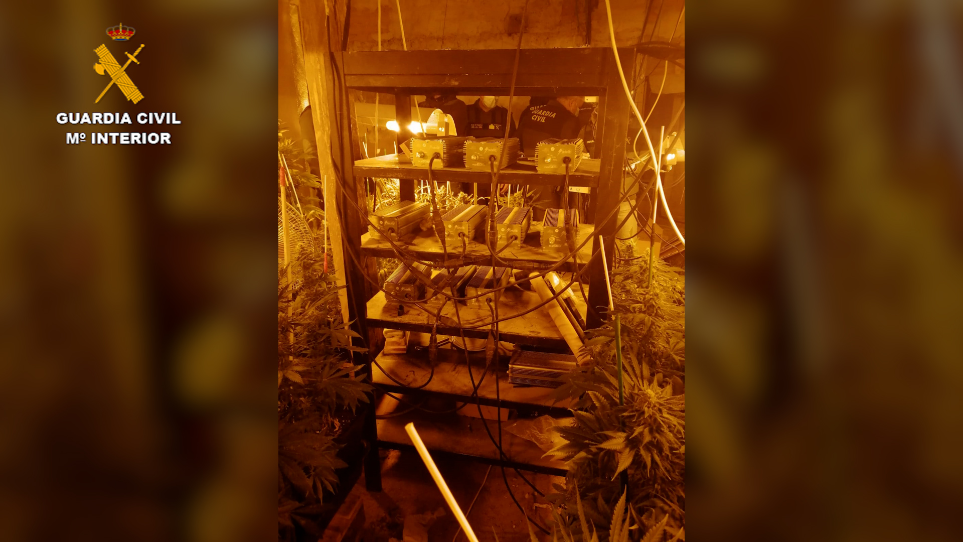 Se realizó la entrada y registro en la vivienda y sus anexos con la pertinente autorización judicial, encontrando en su interior una habitación de unos 60 metros cuadrados donde se localiza la mencionada plantación.