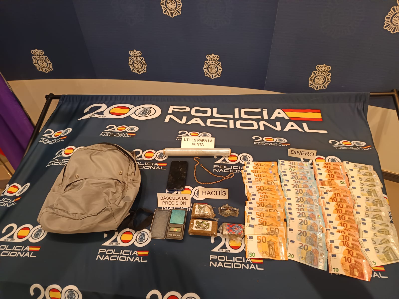 Uno de los detenidos, reincidente en delitos similares, y se incautan más de 200 gramos de hachís y 1.450 euros en efectivo
