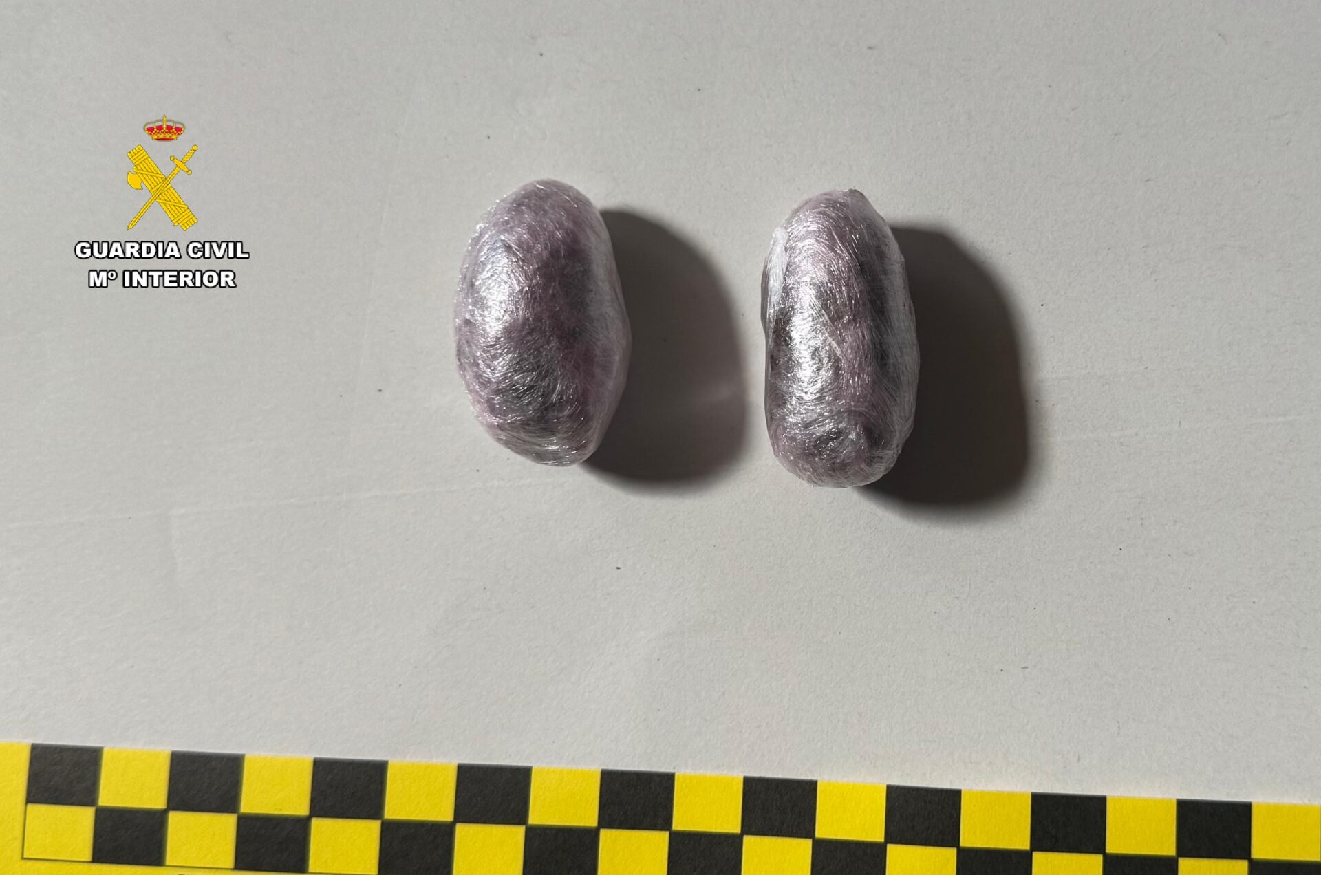 Agentes de la Guardia Civil verificaron seguidamente que esta persona no portase nada ilícito, localizando entre sus ropas dos envoltorios con hachís, que arrojaron un peso final de 21 gramos.