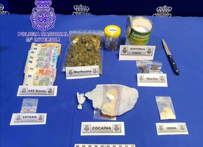 En la mañana del pasado viernes se llevó a cabo un dispositivo policial, se detuvo al investigado y se efectuó el correspondiente registro domiciliario donde se intervinieron los siguientes efectos: diez gramos de cocaína, once de MDMA, 50 gramos de marihuana, once gramos de hachís, dos pastillas de éxtasis, sustancia de corte, 140 euros en efectivo y numerosos efectos para la elaboración y venta de las sustancias estupefacientes.