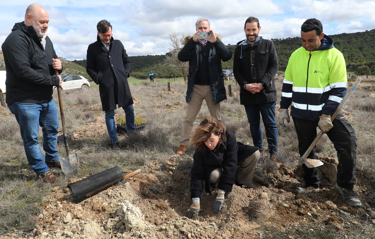 Asimismo, Sánchez afirmó que las instituciones han de comprometerse y “actuar conjuntamente en la construcción de un futuro más sostenible, sobre todo en terrenos como este de Dueñas, que no tienen ningún uso”, explicó la presidenta, que reconoció que con esta iniciativa se contribuye, además, a la reforestación y repoblación de la fauna local y ”en este caso en una especie emblemática como la perdiz roja”, dando la posibilidad de que esta plantación “sirva de refugio” para estos animales. Por último, la presidenta de Paradores expresó su alegría por comenzar con este proyecto en la localidad palentina y espera poder replicarlo “en otros muchos lugares de nuestro territorio”.