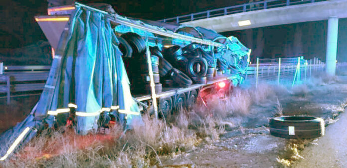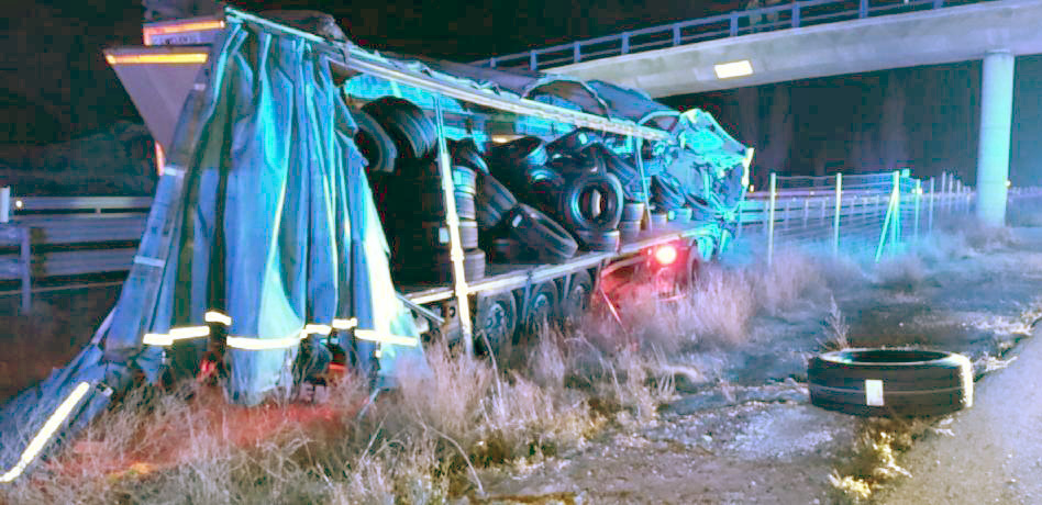El vehículo, que transportaba neumáticos, sufrió un reventó en una rueda y provocó otros siniestros al quedar parte de la carga en la vía