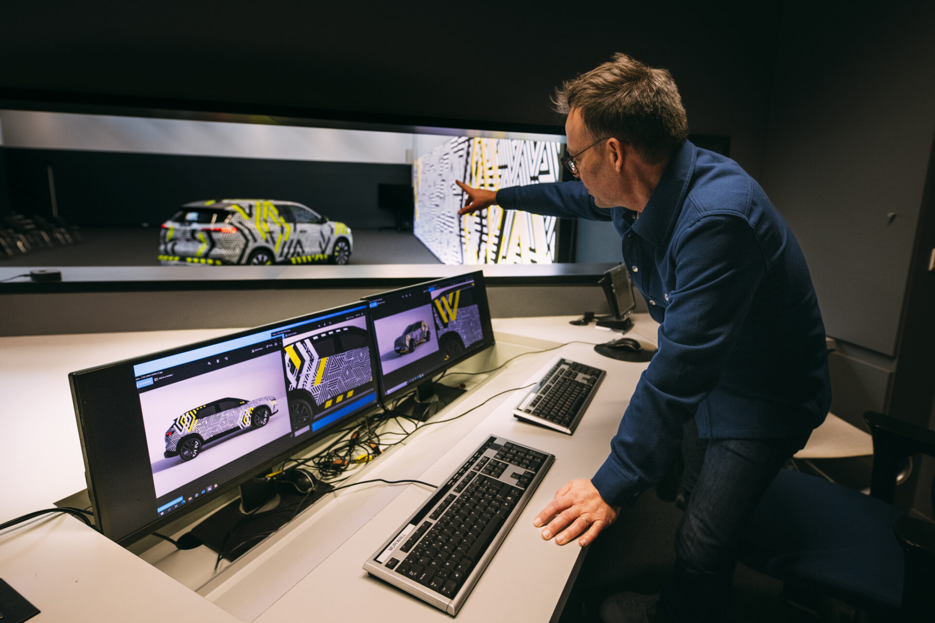 François ya había creado el camuflaje de Nuevo Megane E-TECH 100% eléctrico revelado con ocasión de los Renault Eways. La necesidad de disimulo de las líneas del coche no era tan fuerte como para Nuevo Austral. El tema gráfico no tenía la misma escala y jugaba más con el degradado del negro al blanco hacia la parte trasera del coche.