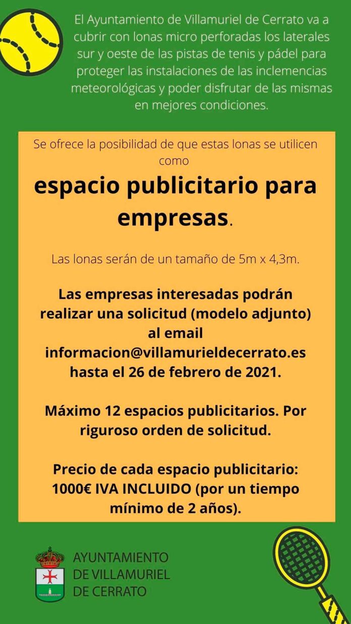 Todas las empresas interesadas podrán realizar una solicitud y enviar los datos hasta el 26 de febrero de 2021 a informacion@villamurieldecerrato.es