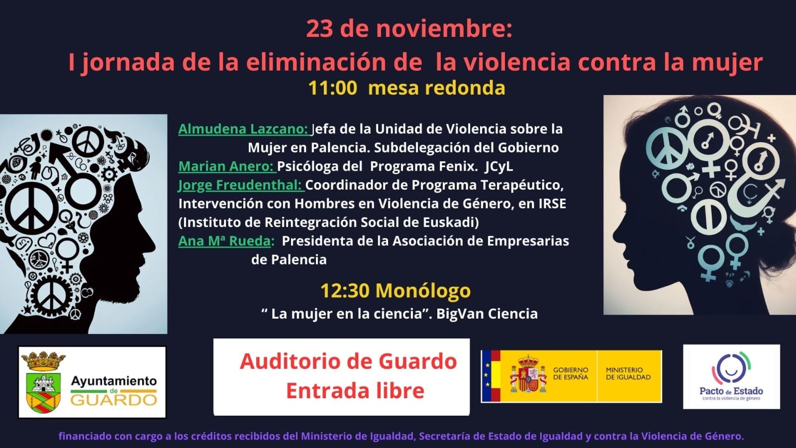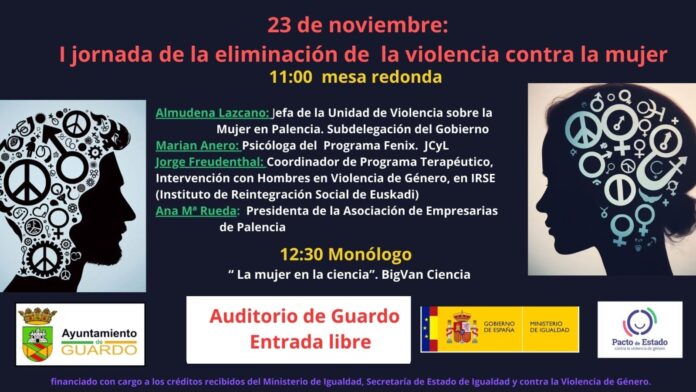 Coincidiendo con la próxima celebración del Día Internacional de la Eliminación de la Violencia contra la Mujer, establecido en el año 1999 por la Asamblea General de las Naciones Unidas con la finalidad de promover acciones informativas y de sensibilización, el Ayuntamiento de Guardo, sensibilizado con esta causa y con el impulso de la concejalía de Infancia, Educación, Servicios Sociales, Juventud, Mujer, Igualdad y Sanidad de la que es titular Rebeca Poza Hierro, ha programado diversas actividades que se iniciaran el próximo jueves día 23 con una mesa redonda en la que participarán María Anero, psicóloga del Programa Fenix de la Junta de Castilla y León, Almudena Lazcano, Jefa de la Unidad de Violencia sobre la Mujer en la Subdelegación del Gobierno de Palencia, Jorge Freudenthal, Coordinador del Programa Terapéutico de Intervención con Hombres en Violencia de Género del Instituto de Reintegración Social de Euskadi (IRSE) y Ana Mª Rueda, Presidenta de la Asociación de Empresarias de Palencia, que estará moderada por el comunicador de Radio Guardo, Andrés Vázquez.