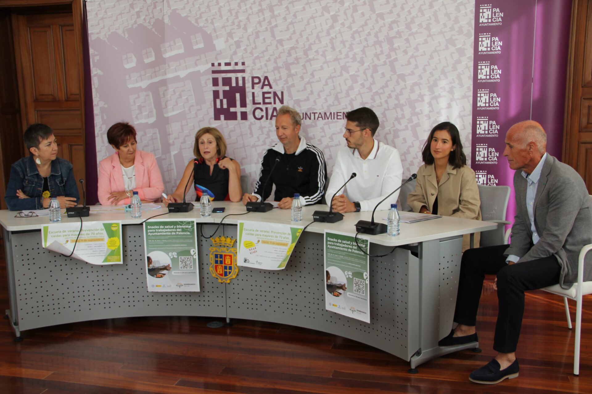 En la rueda de prensa sobre los nuevos programas de salud y bienestar del Ayuntamiento de Palencia, participaron Charo García, Concejala del área de Servicios Sociales; Orlando Castro, Concejal de Actividad Físico-Deportiva y Salud; M. Jesús Prieto, Técnico encargada de los centros de mayores del Ayuntamiento; Sergio Álvarez y Paula Rodríguez, representantes de la empresa Sembrando Salud; José Antonio Pérez de Diego, Coordinador de actividades PMD; y Mar Rodríguez, Concejala de Mayores.
