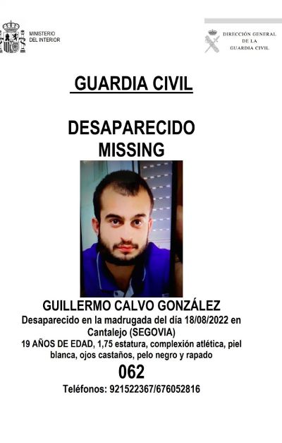 Desde la Subdelegación del Gobierno trasladaron su más sentido pésame a la familia del joven por su pérdida. La cercanía entre ambos municipios, separados por unos 10 kilómetros, puso en alerta a todos los que estaban participando en el dispositivo de búsqueda. Un triste final para los vecinos de Cantalejo en sus esperadas fiestas patronales, tras dos años de ausencia por la pandemia, tras hacerse pública la desaparición del joven de 19 años, al que se le perdió la pista en la madrugada del jueves. Sus padres, que leyeron la carta al llegar de la verbena, dieron rápidamente la alerta y se difundió el cartel con la foto y las características físicas de Guillermo.