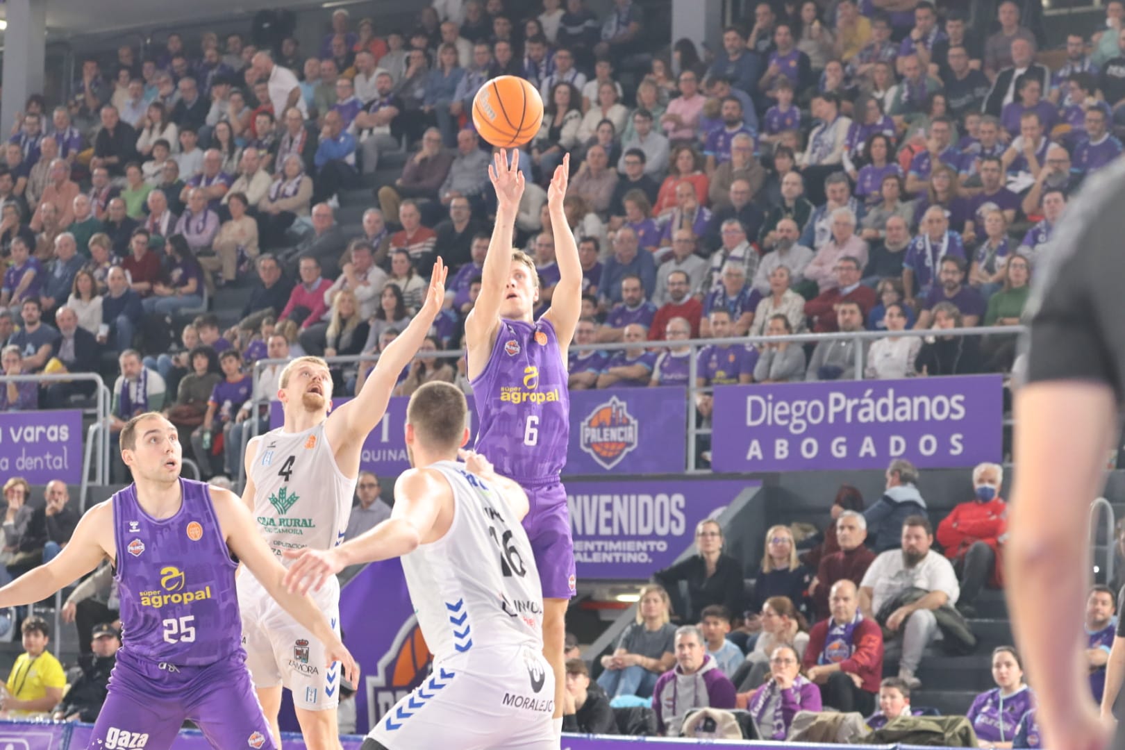 Undécima victoria para el Palencia con Krutwig como máximo anotador de los morados y con el pívot americano también como el más valorado, con 20 items.
