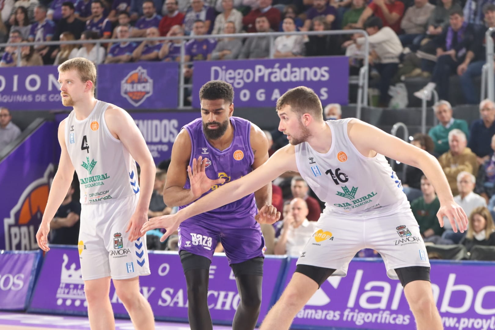 El argumento del triple fue el que siguió esgrimiendo el Zamora. Era su recurso preferido. Y le daba resultado. Hasta desde su casa y sobre la bocina. Siete arriba para los visitantes (29-36) y pareció que el pabellón se daba cuenta de que el equipo necesitaba de su apoyo. Las decisiones arbitrales ayudaron a calentar un poco más el ambiente. Un 2+1 no pitado a Krutwig y otra que le sancionaron mientras defendía a Paukste. Para pitada, la del respetable al trio arbitral. Pero el marcador invariable: 29-36 mediado el cuarto.