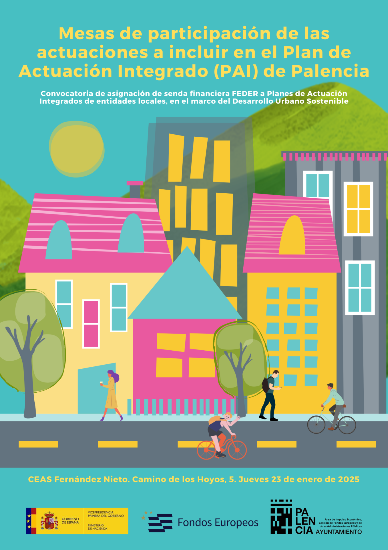 Es por ello que el próximo jueves 23 de enero, a partir de las 09:00 horas, está prevista una reunión con los distintos colectivos y entidades que deseen participar en esta iniciativa en el CEAS Fernández Nieto de Palencia. En ella, se expondrán las líneas generales de la convocatoria de ayudas y del PAI, para posteriormente dar paso a la participación activa de los asistentes y a la recogida de sus propuestas.