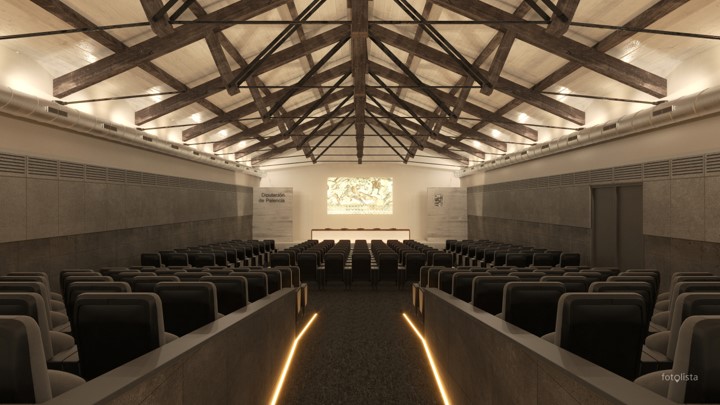 Para alojar los nuevos medios de sonido y de conectividad se utilizarán los huecos de las ventanas, tapadas ahora por cortinajes. Se crea una superficie uniforme, una especie de cajón que tapa de corrido las ventanas en el interior. De cara a la calle se mantiene, al ser “un edificio histórico”, señaló Rafael Martínez, jefe del Servicio de Cultura de la Diputación.