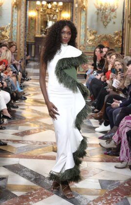 Desde Burgos, Carolina Gázquez presentó una colección de vestidos de novia inspirada en la flora y fauna selvática, confeccionados con tejidos naturales y diseños innovadores. Seguidamente, la elegancia atemporal de la moda nupcial se hizo presente en la colección ‘Sempiterna’, de la vallisoletana Esther Noriega, que presentó prendas con detalles distintivos como cinturones de pedrería y escotes, capturando la esencia eterna del romance.