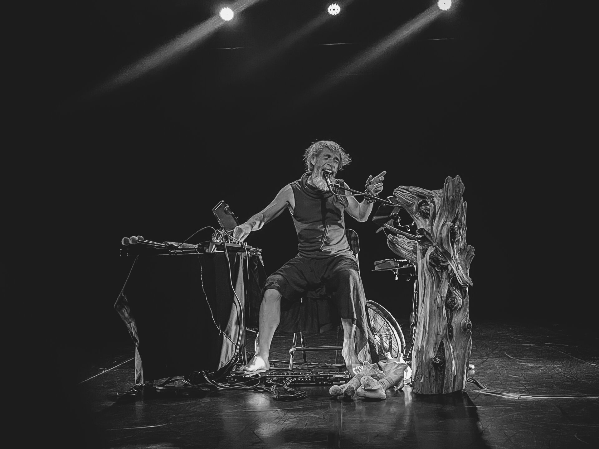 Y es que, en el arte de neønymus se conjugan la música, el cerebro, la espiritualidad, la prehistoria y la tecnología. Todo a través del principal instrumento de su música, la voz, y de una herramienta, una loop station, que permite al cantor crear auténtica polifonía y grabar otros instrumentos como flautas de hueso, percusión con un árbol o tubos. ¿El resultado? Un sonido único, creado en ese mismo momento, que hará que el espectador viva una experiencia irrepetible a través de un espectáculo y unos paisajes sonoros capaces de provocar en el público del siglo XXI una emoción profunda y sorprendente.