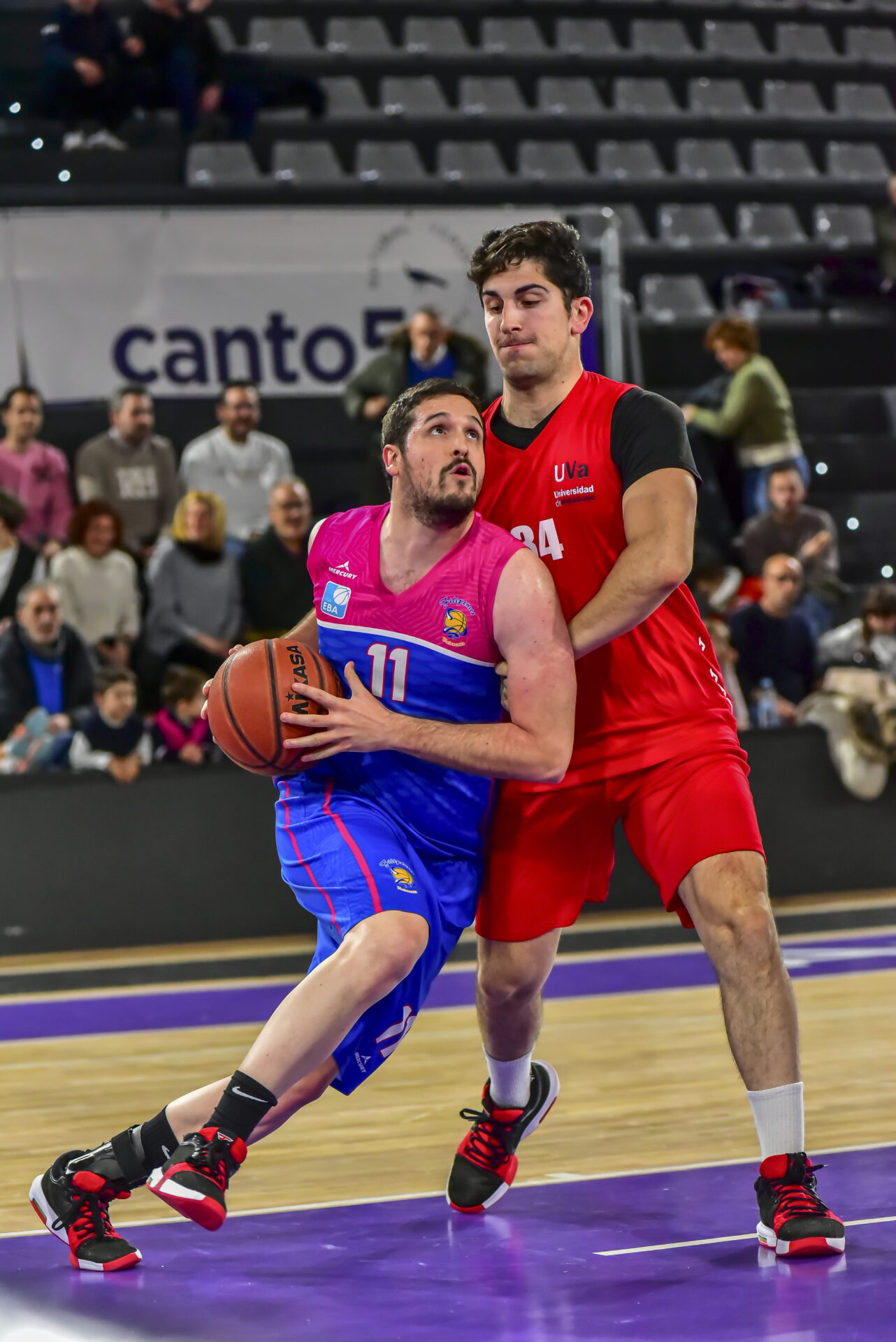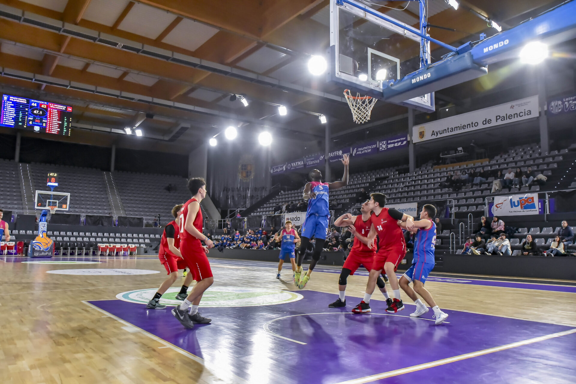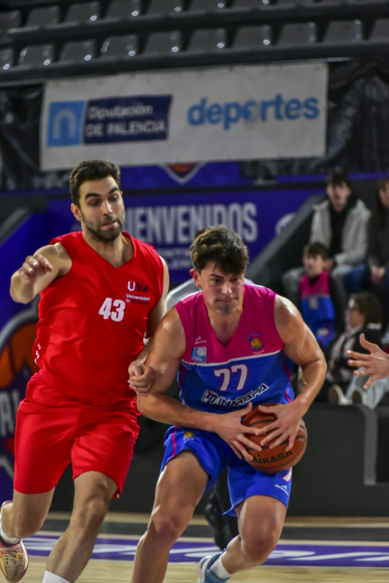 El partido no comenzó bien para los locales, que se encontraron con un Universidad de Valladolid muy acertado en ataque y que abrió una peligrosa brecha en el marcador con un 2-10 en los primeros minutos. El Filipenses reaccionó desde la defensa, reduciendo la ventaja rival al 10-12 con el que terminó el primer cuarto. Sin embargo, los visitantes volvieron a golpear con un parcial de 0-6 que obligó al técnico palentino a pedir tiempo muerto. A partir de ahí, el equipo local creció, dominando el rebote y encontrando mejores situaciones en ataque hasta darle la vuelta al marcador y marcharse al descanso con un 32-29.