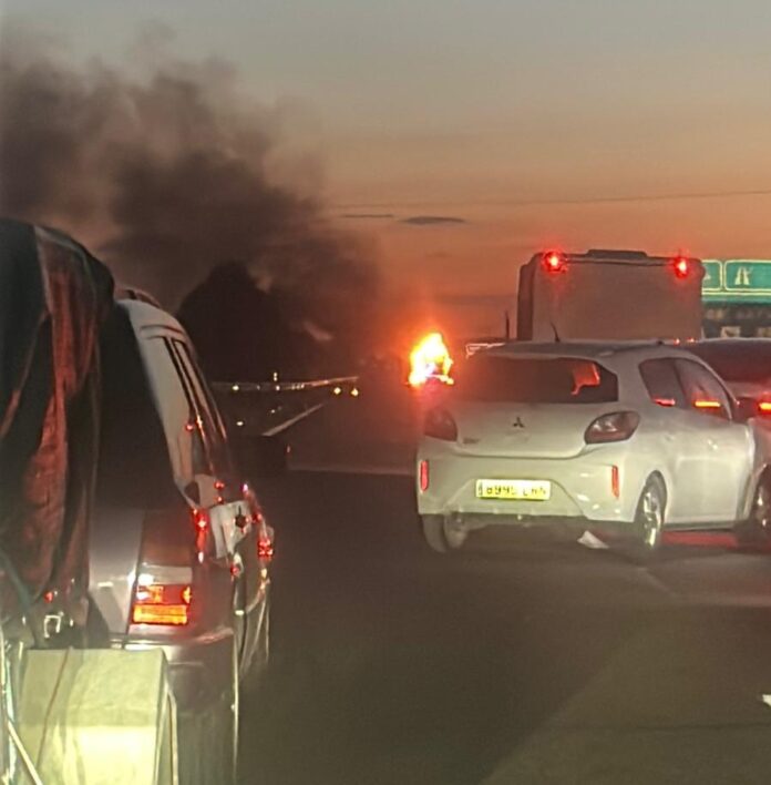 El incendio de un vehículo, al parecer un camión según los testigos, ha provocado el corte de la autovía A-62 que une Palencia con Valladolid esta misma tarde-noche.