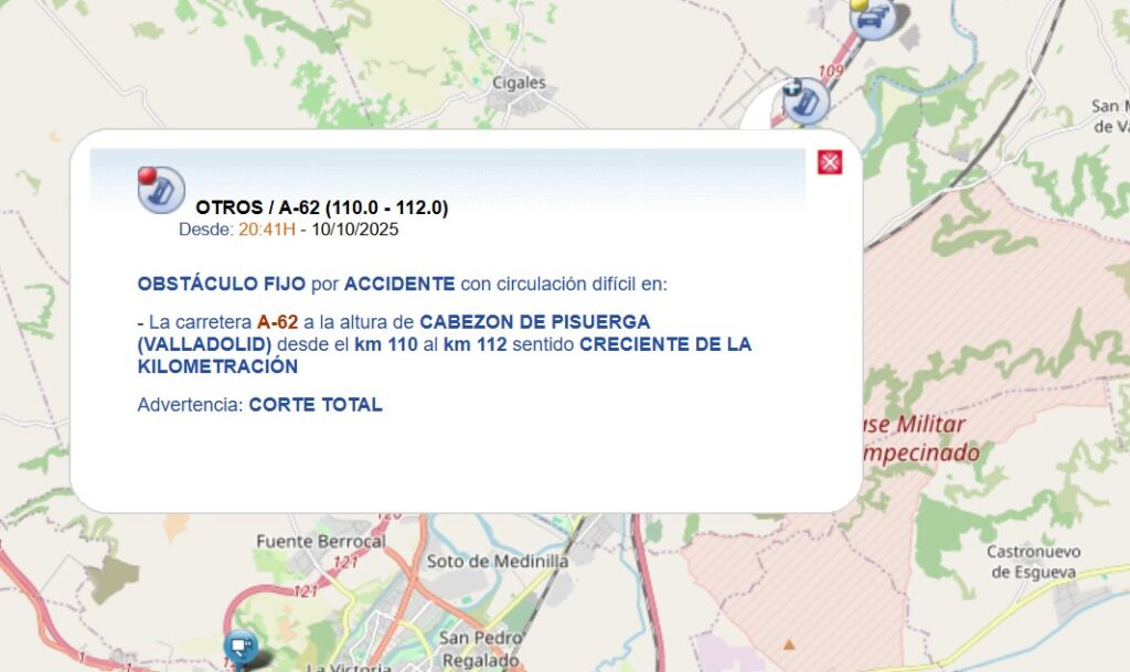 El siniestro se ha dado en las inmediaciones de la salida 112 en Cabezón, en sentido Valladolid