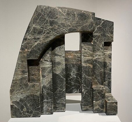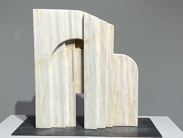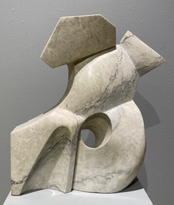 Esta apertura de espacios se observa en otras piezas, pese a que el material será más potente, como el mármol o el hierro. Luis Alonso juega con las formas para adaptarlas al volumen que busca y encuentra. El escultor descontextualiza el bloque de mármol o de hierro y lo vacía para investigar sus perfiles, sus lenguajes escultóricos, sus líneas rectas, sus curvas, sus texturas y sus gradaciones cromáticas.