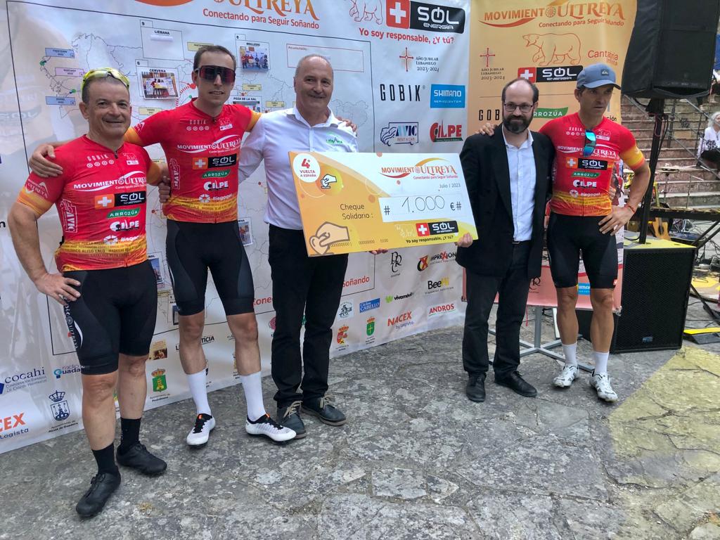 Precisamente, la Coral de Liébana ha sido la asociación con la que en esta última etapa ha colaborado el Movimiento Ultreya Más Sol. Íñigo Gómez Zubeldia, el Embajador de Liébana, fue el encargado de hacer entrega del cheque solidario valorado en 1.000 euros. Este cheque es una aportación del principal patrocinador del Movimiento Más Sol Energía y de las diferentes entidades que colaboran con nuestro proyecto.